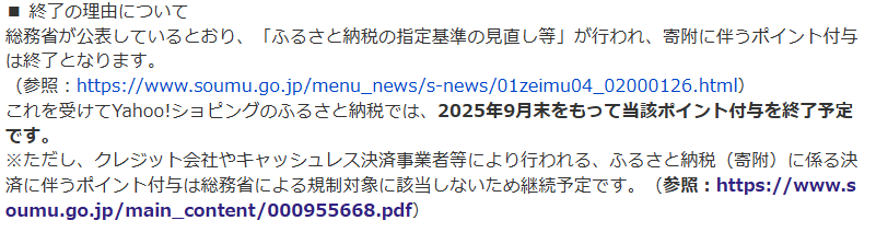 2025年9月30日までは、ヤフーショッピングでのふるさと納税も一般の買い物と同じようにポイントが付与されていました。