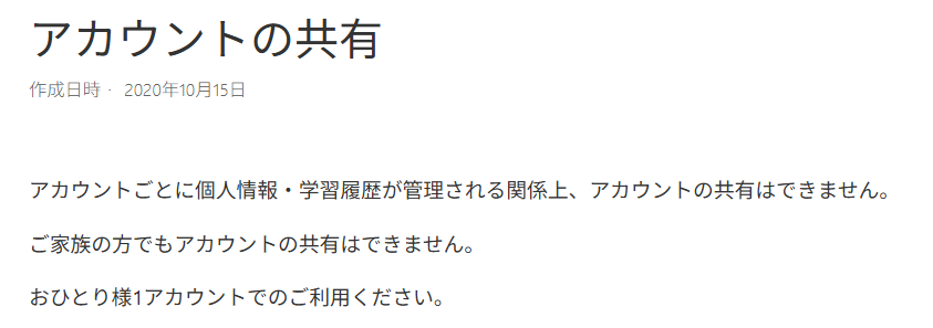 kimini英会話では、アカウントを共有するデメリットについて以下の点を挙げています。