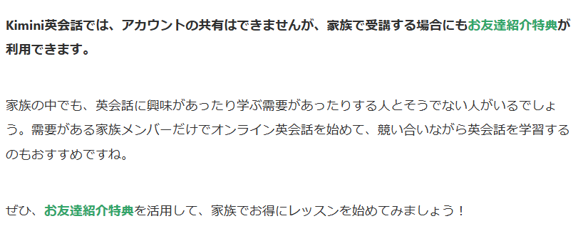 家族・兄弟でkimini英会話を始める場合には、ぜひ利用したいお得な特典です!