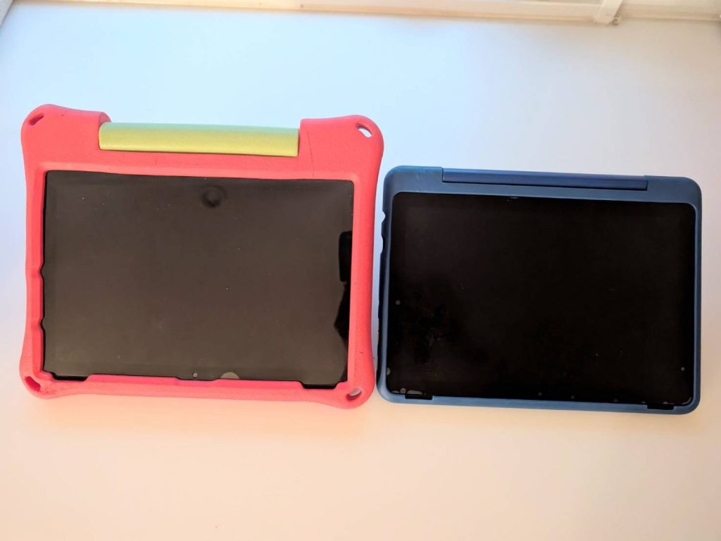 (右側の青いカバーはAmazon fire HD10キッズプロに最初からついてくる純正のカバー)